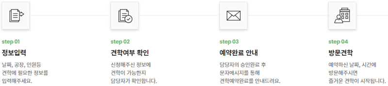- 견학 신청은 방문일 전일 오후 3시까지 예약 가능